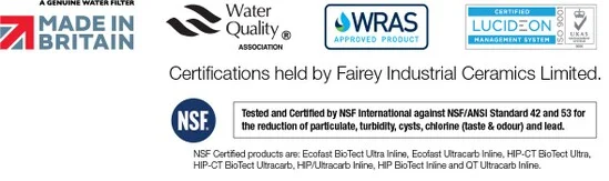 A Doulton Ultra víztisztító ezüst-kerámia technológia egyedülálló baktériumvédelmet és kimagasló tisztítási hatékonyságot biztosít az aktívszénblokk számára. Bármely (akár ólomszennyezés szempontjából kockázatos) fogyasztóhelyen biztonsággal alkalmazható.